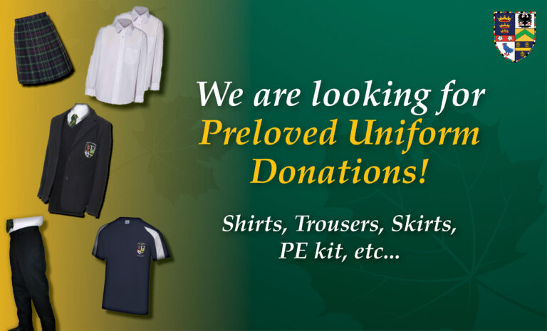 To do this, we are asking for donations to be brought to be brought to reception for the attention of Miss Pearson or Mrs Wright or placed into the uniform recycling bins.